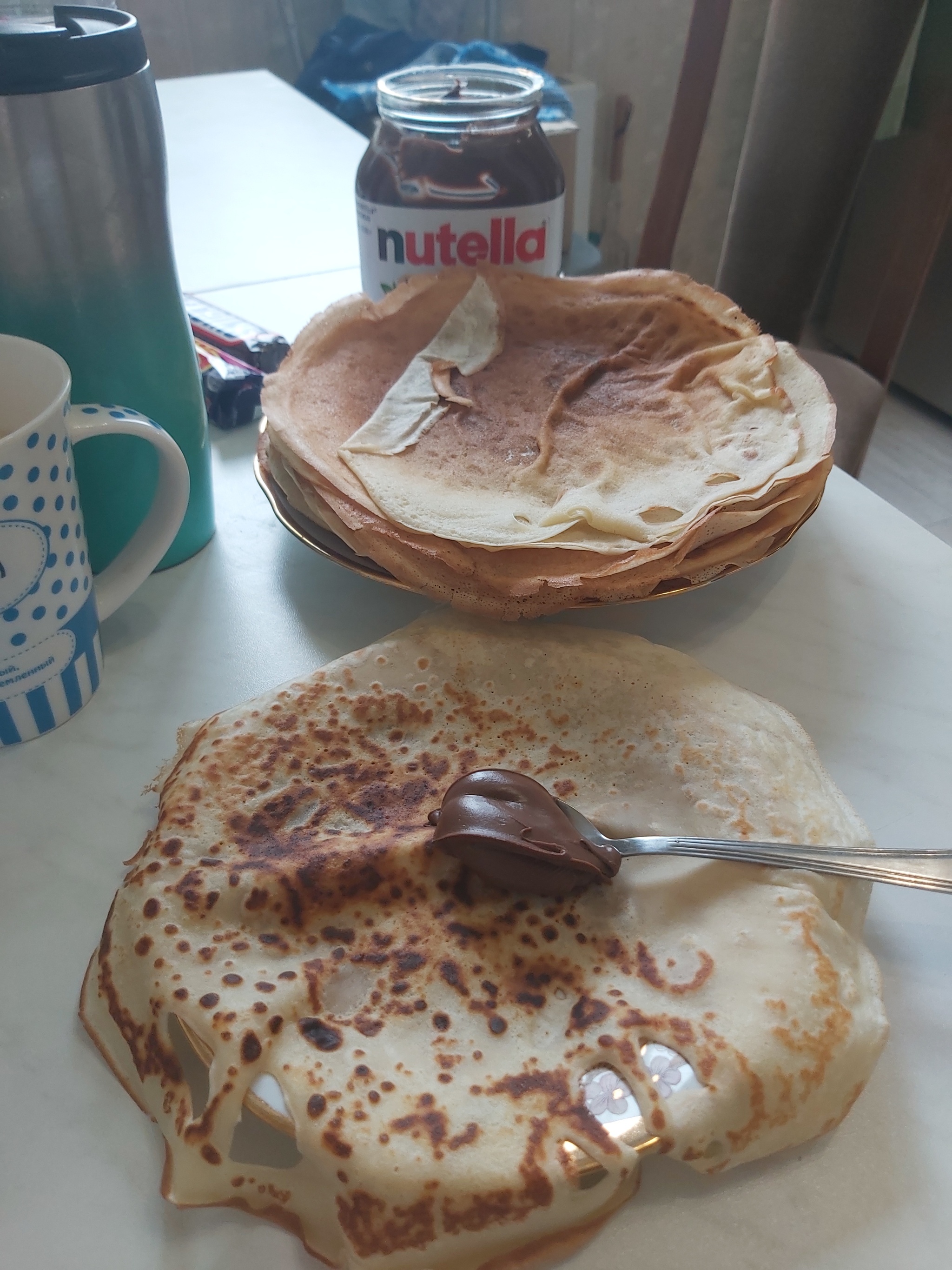 Тесто будет жидким, как вода, не бойтесь и не пытайтесь добавить еще муки. Сковородку смазать маслом нужно будет только 1 раз перед тем, как будете жарить первый блинчик и все (ну как обычно)☺️