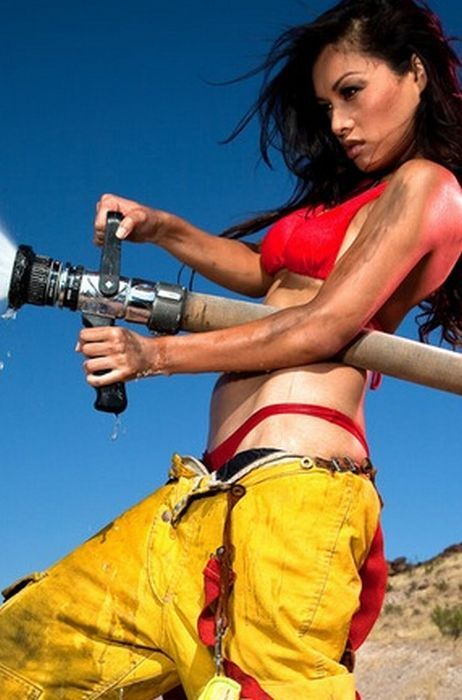Из пожарной машины вываливаются трое , в жопу пьяных , пожарных и три девушки в мини юбках и на каблуках, не менее в жопу, пьяных. Пожарные бегут стаскивают свой брандспои́т и начинают тушить.