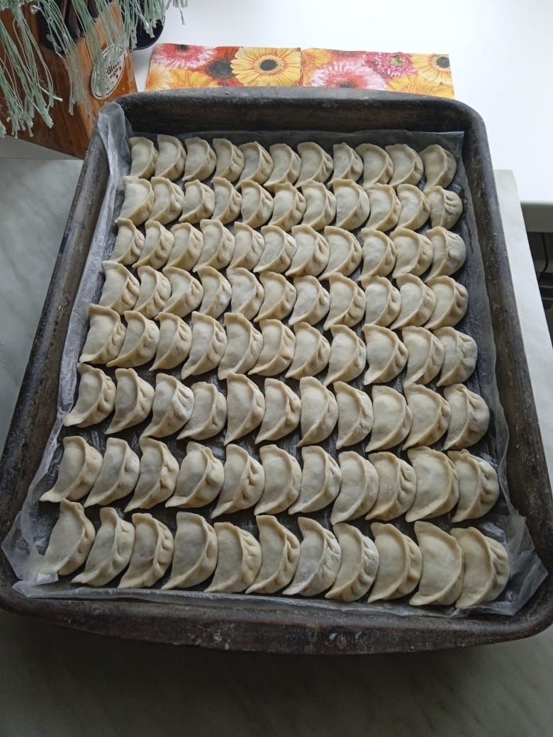 Так вот что придумал мой самый замечательный на свете папа. Он приготовил в качестве спасибо 20 кг разных пельменей- с мясом, творогом, картошкой, капустой.