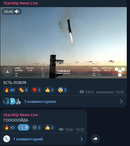 Падающая на гиперзвуке двухсоттонная махина, от ударной волны которой разрывает облака... мягенько садится в объятья той же пусковой башни что её запускала несколькими минутами ранее.