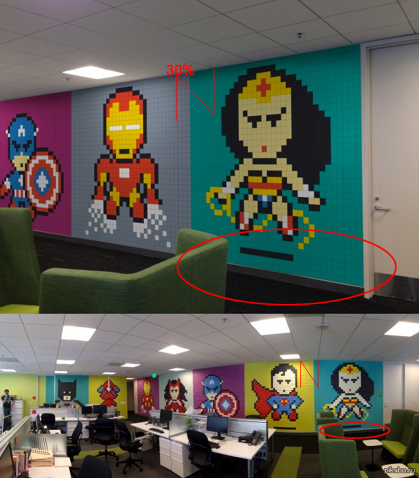 "Раскрасили серые будничные стены офиса цветными стикерами"
