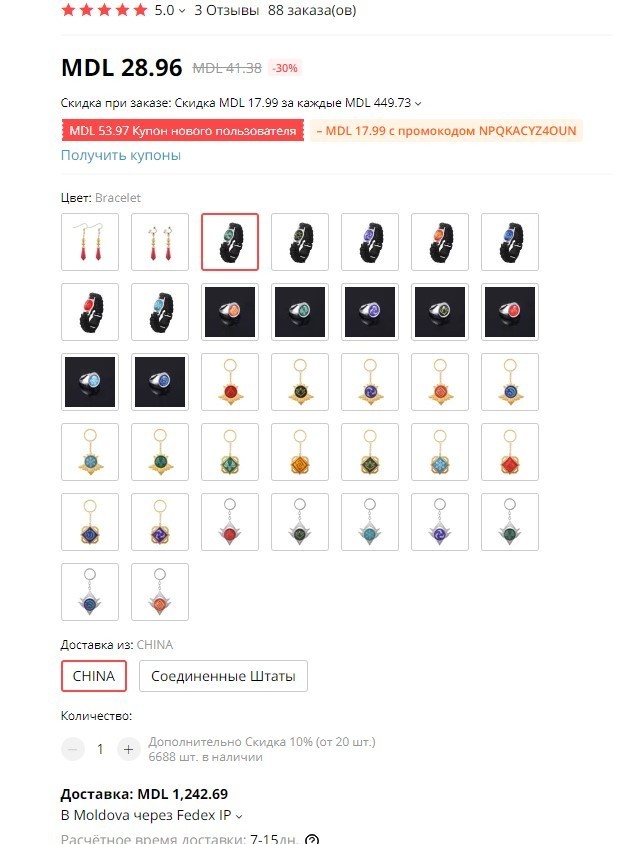 Вот пример, первый попавшийся брелок для ключей. Стоит 29 лей (1.6$). Доставка стоит 1242 лея (69$), через FedEx, либо через DHL 2000 лей (111$). Варианта выбора отправки почтой нет. И так со всеми товарами.