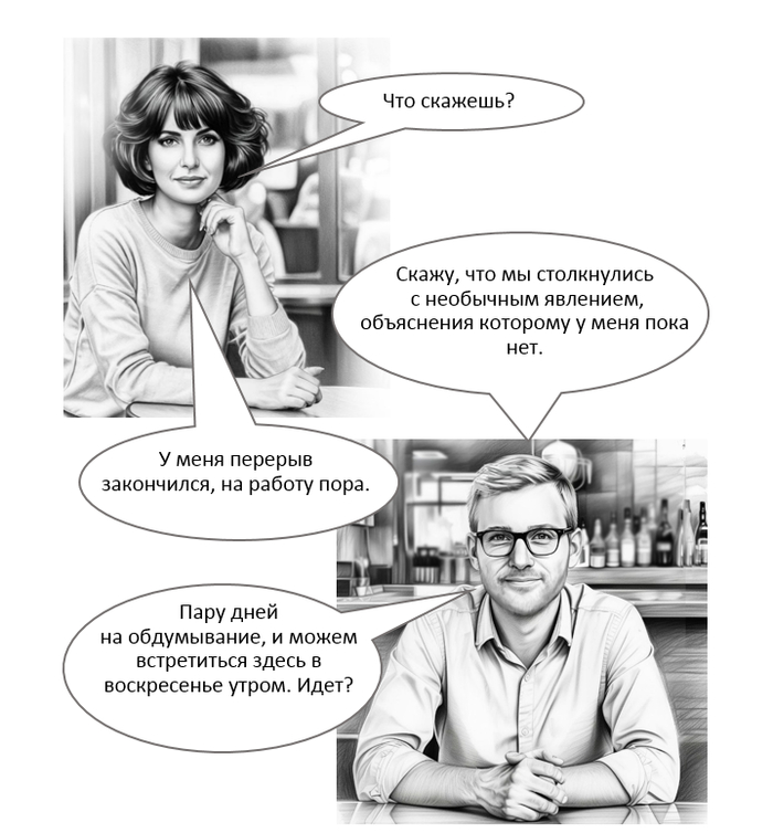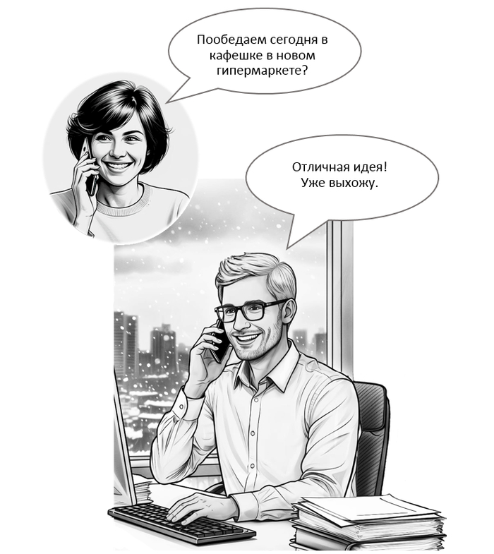 Примчался, Люба уже ждала меня за столиком. Что мы с ней ели — не помню, но поговорили мы с ней очень хорошо. Вспомнили студенческую жизнь, истории разные, жизнь в общаге, друзей, преподавателей...