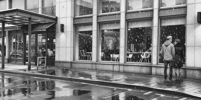 Люба осталась стоять перед окном, а я вернулся за наш столик. В четвертом окне Любы не было! Желтоватое здание ухмылялось выцветшим плакатом, деревья слегка покачивали ветвями. Как и в других окнах, в четвертом окне начал идти небольшой снежок.