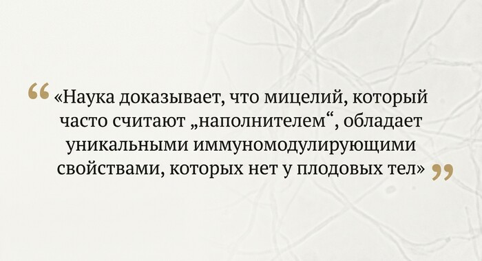 Почему это важно? Рынок переполнен предложениями, но «просто гриб» в капсуле — это упрощение. Наука доказывает, что мицелий, который часто считают «наполнителем», обладает уникальными иммуномодулирующими свойствами, которых нет у плодовых тел.