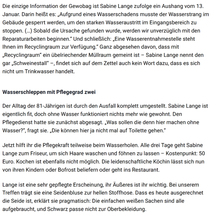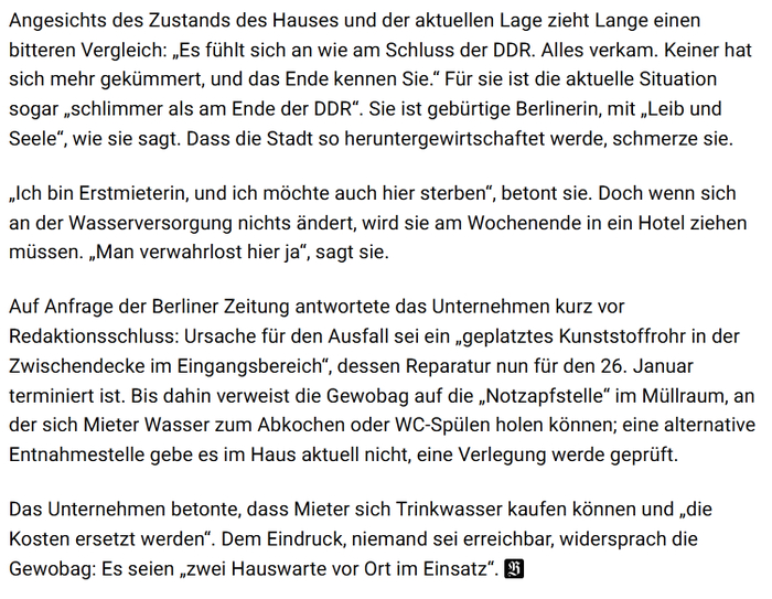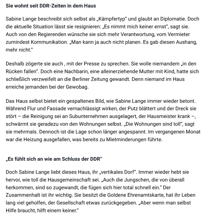 Мириам С.*, которая не хочет называть свою фамилию, работает врачом общей практики по убеждению. Её пациенты ей дороги — особенно пожилые берлинцы, которые борются с болезнями, вытеснением из привычной среды и потерей своего привычного окружения. Уже десять лет она ведёт свою практику на юго-востоке города и пользуется доверием многих людей, которые остаются верны ей годами. Однако повседневная работа становится всё более тяжёлой: неработающие электронные рецепты, наплыв пациентов, с которым почти невозможно справиться, и всё новые предписания, которые она с трудом может согласовать со своей врачебной совестью. С 2026 года и она должна будет выполнить определённый уровень вакцинации, чтобы получить полное вознаграждение от Ассоциации врачей с обязательным медицинским страхованием — независимо от того, считает ли она эти прививки с медицинской точки зрения целесообразными. Интервью.