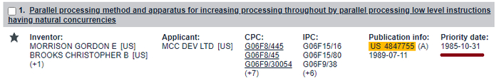 Для справки: на технологию, позже названную EPIC, имеется патент US4847755A, с датой приоритета от 1985 года.