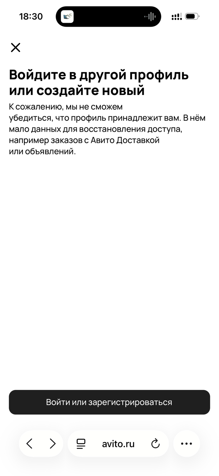 Я зарегистрировал аккаунт,но через час пользования им его скинули на верификацию,но верификацию я проходил на аккаунте,к которому авито не дает доступ,у меня есть и почта и пароль,нет номера(ор там не привязан) и могу еще раз пройти верификацию,но авито не дает,пишет следующее: