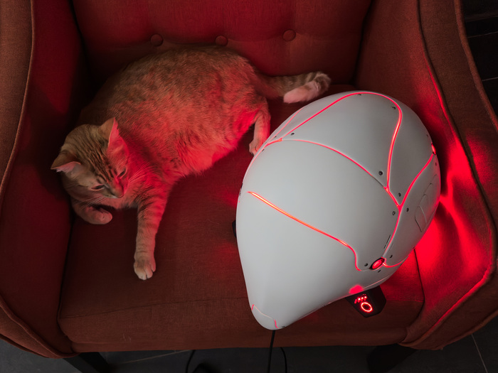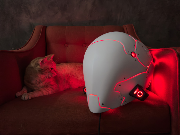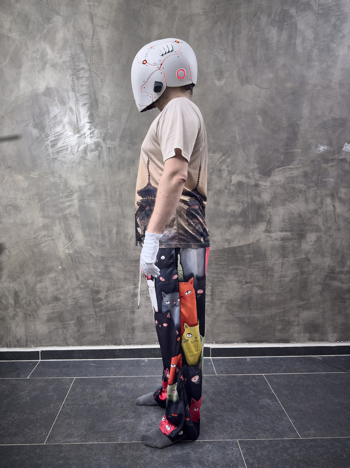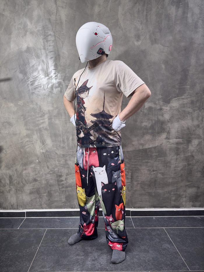 Как можно видеть, кот очень рад, а шлем достаточно компактный и не делает человека головастиком.