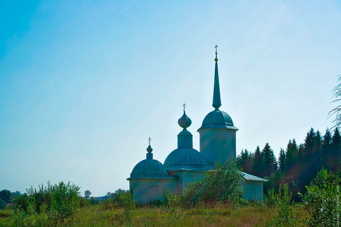 Вот Введенская церковь в Камгорте, чересчур большая для такого села. Мимо неё я вышел обратно на трассу. День обещался быть жарким и солнечным.