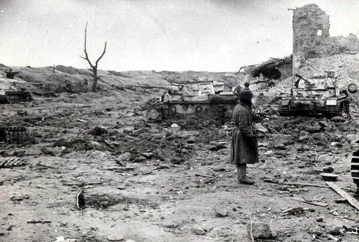 Здравствуйте Уважаемые читатели! Очень интересные фотографии, а точнее история с ними связанная. В декабре 1942 года Красная армия окружает немцев в городе Великие Луки, всего 7 тысяч. Немцы собирают силы и пытаются деблокировать окруженцев, и в начале января до крепости в городе остается 5 километров. Так же очаг сопротивления сохранялся в районе вокзала, в восточной части города. На помощь своим немцы отправляют боевую группу из восьми танков, нескольких бронетранспортеров и САУ. И да, враг прорывается к своим. Но вот незадача, запасов снарядов и горючего фашисты с собой не взяли, что было в баках ушло на прорыв. Как итог, достались они трофеями и вы их можете видеть на фотографиях ниже. В завершение отмечу, на штурм крепости из тюрьмы был направлен генерал Букштынович, по итогу Михаил Фомич дойдет до Берлина и возьмет рейхстаг. А у меня все. Еще больше фактов на канале "Наша история это Гордость" в ТГ. До свидания!