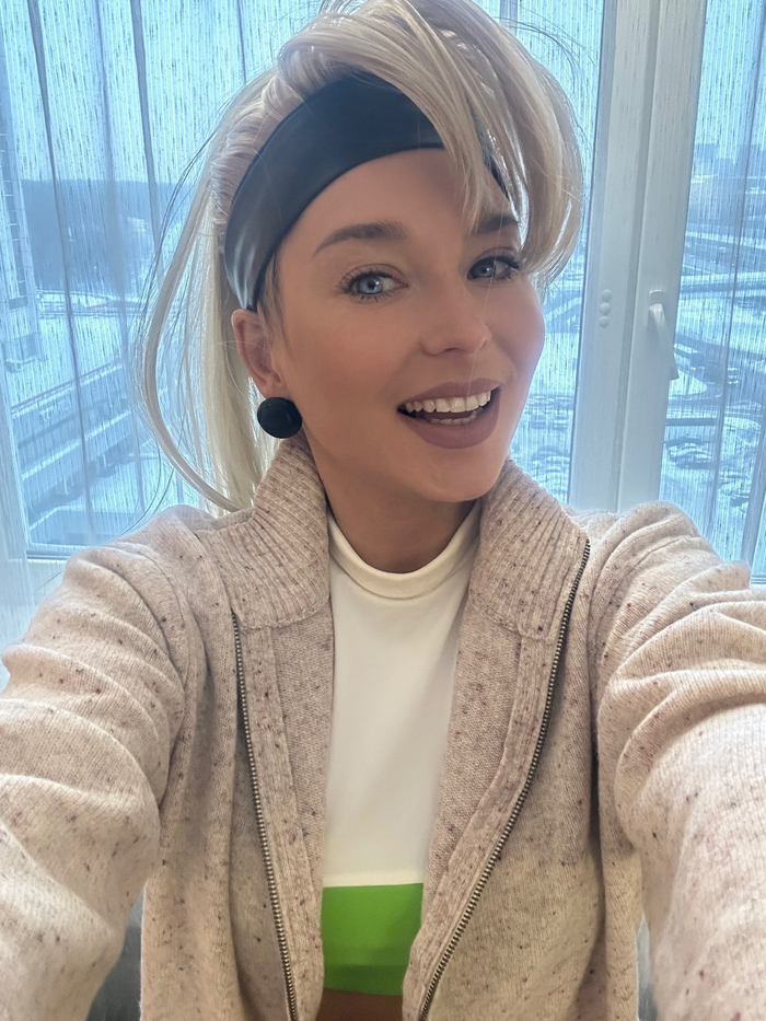 Парик- моя ручная работа, кстати, на мой взгляд, челка получилась вполне неплохо.