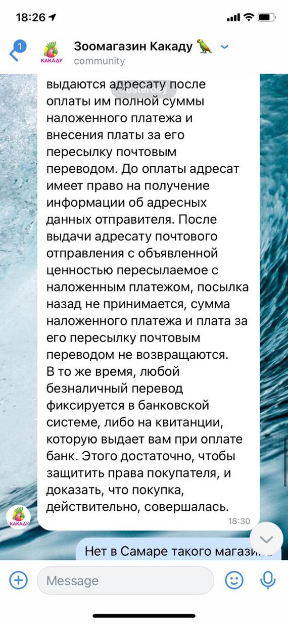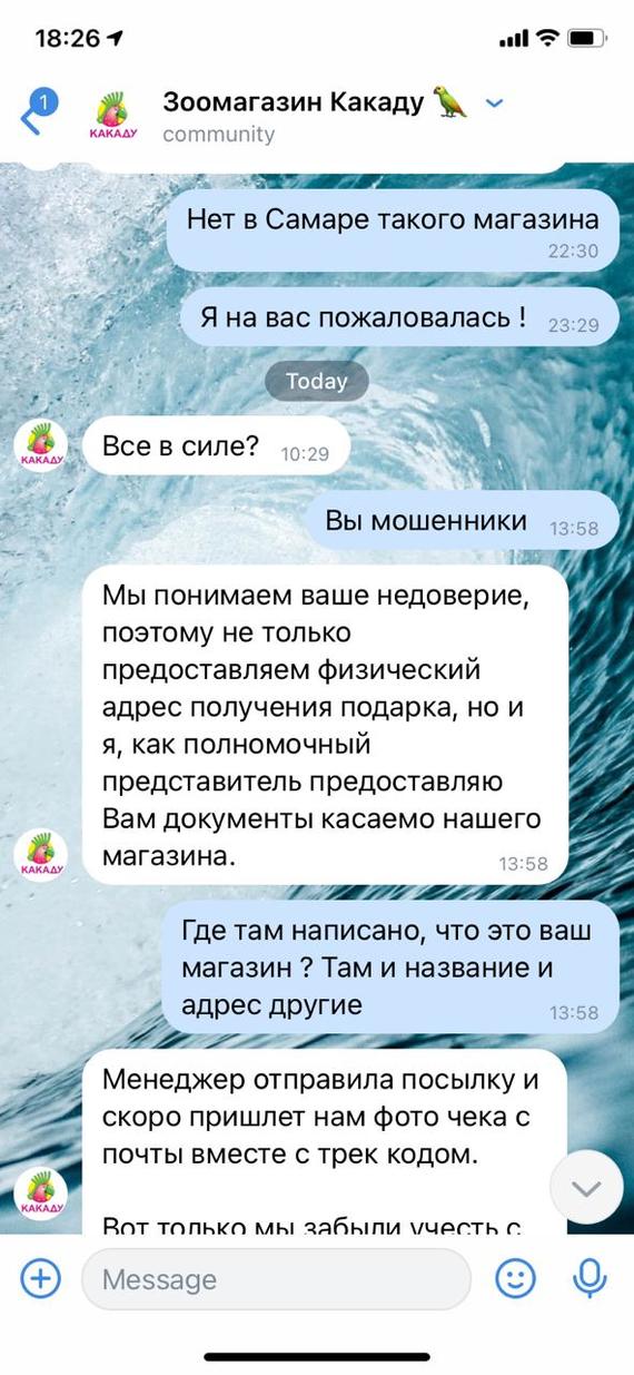 Вконтакте появился очередной искусный развод. Зоомагазин "Какаду", который якобы находится в Самаре проводит розыгрыши и продает товары для животных. При этом, естественно по указанному адресу такого магазина нет, у них нет вебсайта и многие другие факты указывают на то, что это мошенники. Впрочем, переписка скажет сама за себя