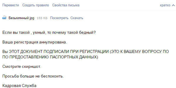 Почитав отзывы о данной сомнительной конторе, впервые решил дерзнуть)) Ответ тоже доставил удовольствие.