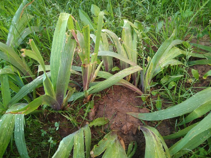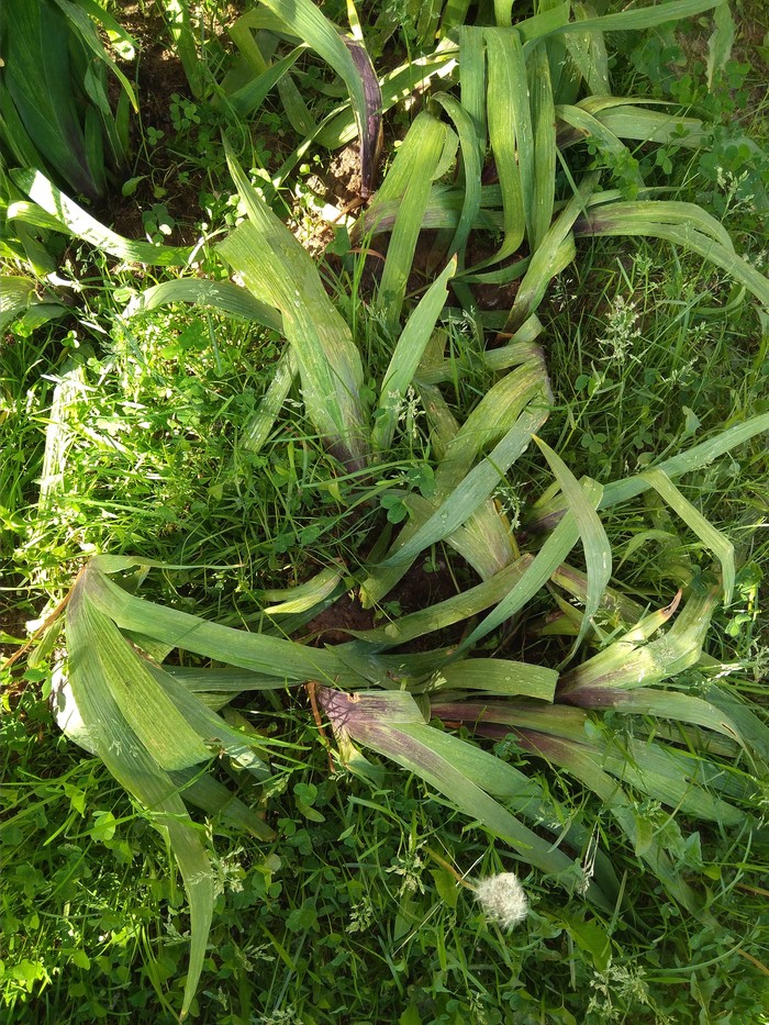 А вот цветы с корневой системой разделяющейся. Один пучок посадил как есть, второй разобрал на элементы и высадил в ряд. Тоже пожухли =(