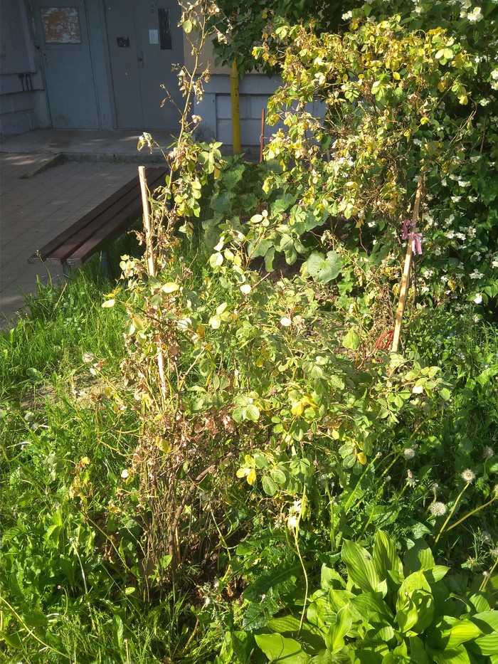 Пару недель назад соседка решила навести порядок во дворе, по итогу мне достались два куста (предположительно роза) и два пучка цветов, названия не знаю. При пересадке кустов по максимуму старался корни сохранить, но уж как получилось.