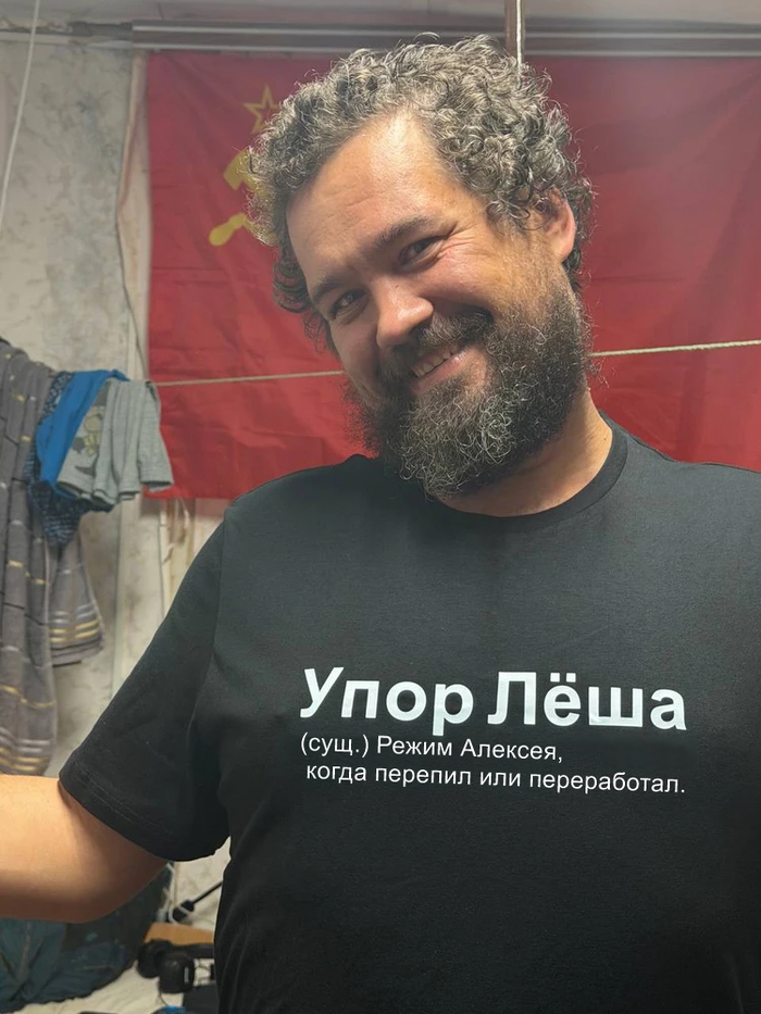 Мужская футболка с надписью Упор Леша - переработавший Алексей