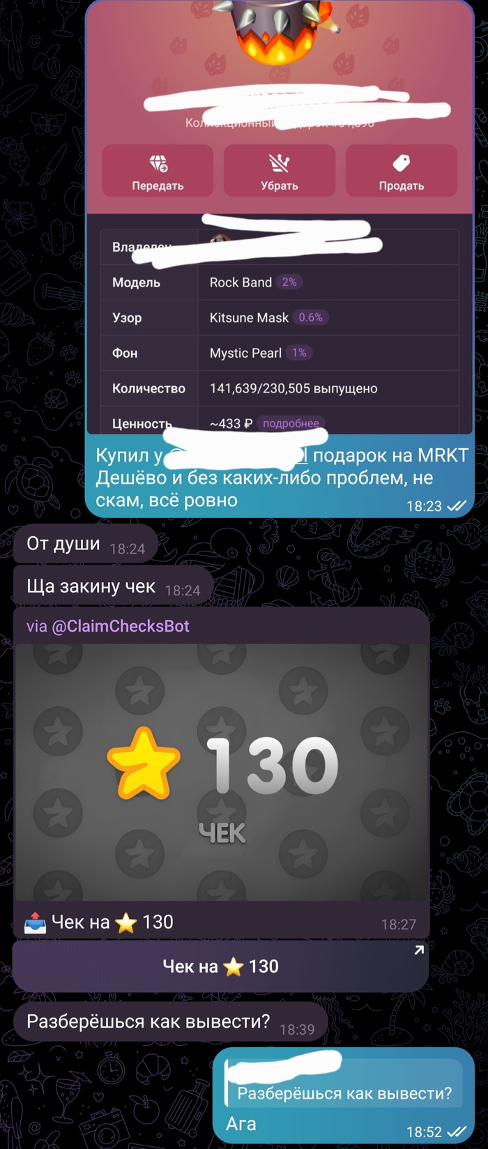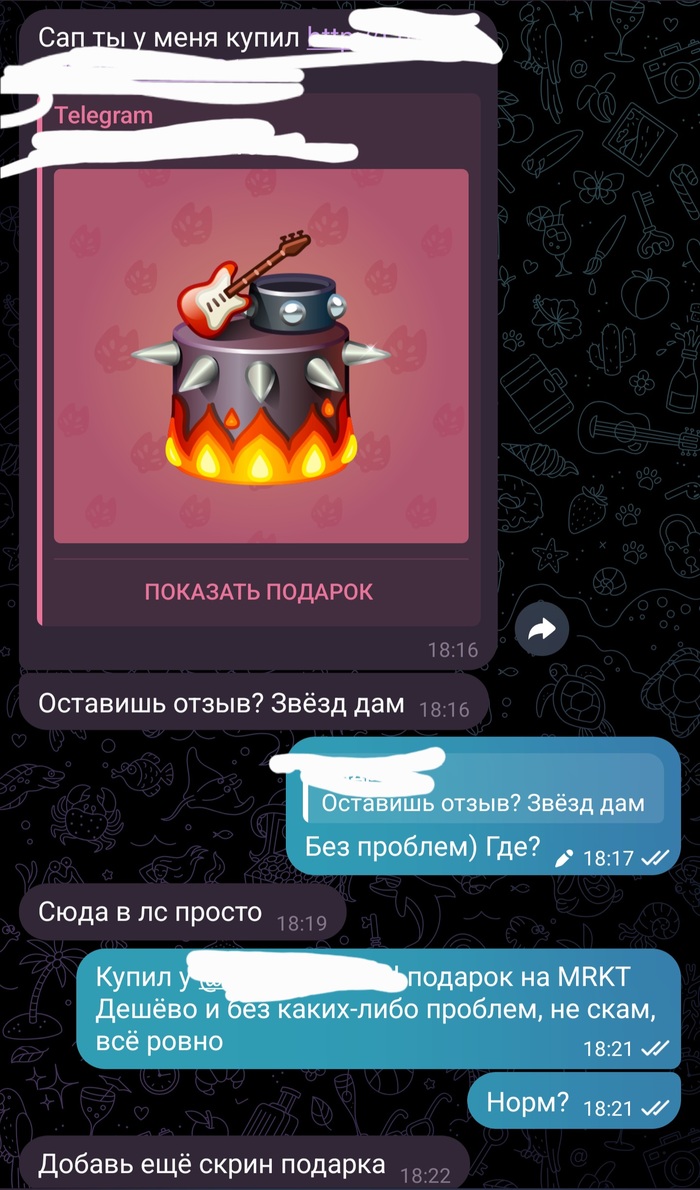 Привет Пикабу, вопрос, сталкивался ли кто-то с подобным? Купил себе тг подарок в маркете тайлера MRKT (не реклама). После покупки написал чувак.