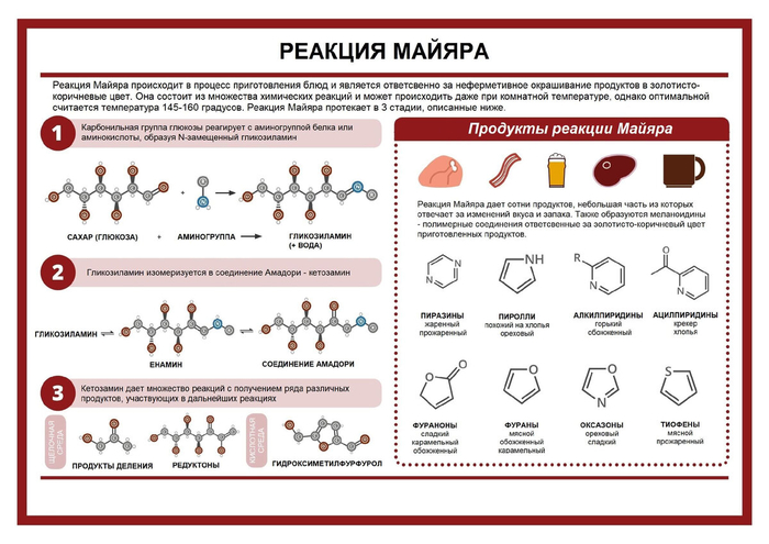 "Реакция Майяра" - это химическая реакция между белком и углеводами под воздействием определенного уровня температуры, когда сложные соединения уже распадаться на менее сложные, но еще не распадаются на элементарные - от 140 до 165 градусов цельсия. Благодаря этому процессу появляется та самая корочка на хлебобулочных изделиях или румяниться шашлык. Именно эта реакция и определяет большинство нашего "вкусно" у блюд. Как правило способность держать продукт на этой температуре в процессе готовки и называется "умение готовить".