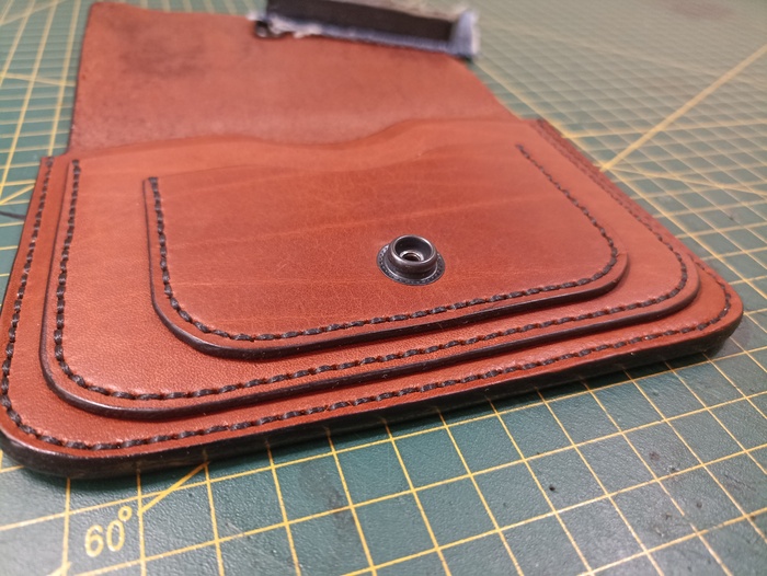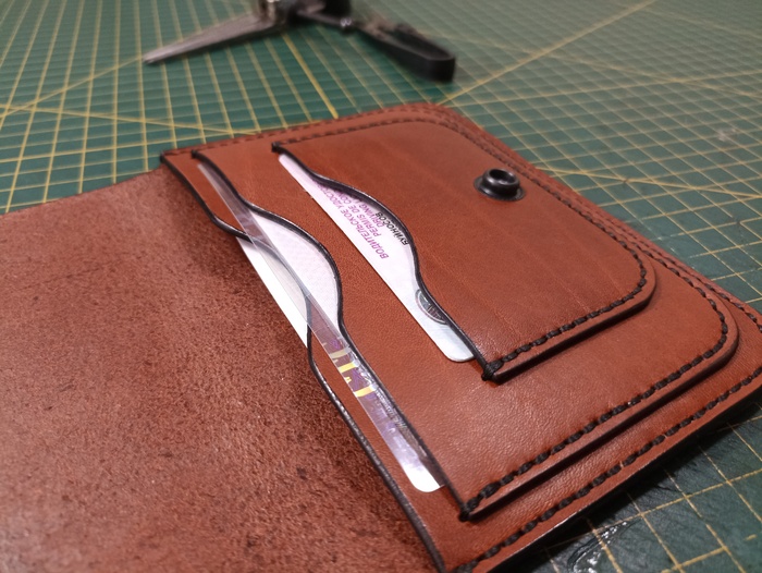 По тому же принципу, используя лекала я отшил 3 кошелька с зажимами для денег, портмоне/докхолдер, бифолд и небольшой кошелек с монетницей