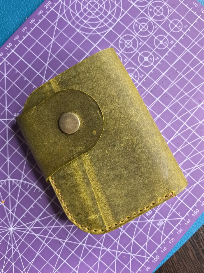 Решил начать из обрезков кожи, увидев их горящими глазами, я поначалу был рад (так как вообще не имел представления как с ними работать). Увидев там кусочек замши, схватил его и ринулся шить картхолдер. Чесно говоря такого Г, я не ожидал (хотя чего еще ожидать не имея никакого опыта)...