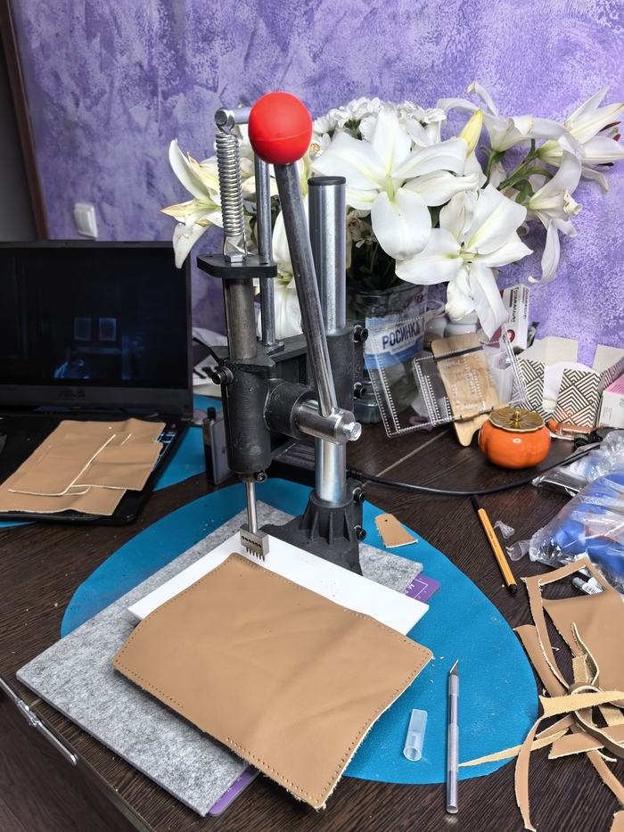 Поняв что делать отверстия шилом точно не мой вариант, начал думать как улучшить качество шва, и на том же маркетплейсе был найден пробивной станок. Самый простенький, но свою функцию он выполняет идеально(фото внизу)