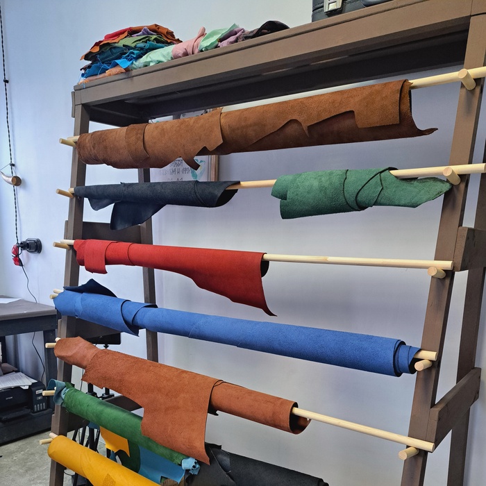 Самое приятное, что заказчица сказала: «Ребята, делайте как знаете. Я вам верю». И понеслось. Сразу после общения мы уезжали в Питер на маркет, что было кстати - в Пензе, увы, нет дельных кожевенных магазинов, а там - раздолье. Лично, вживую обошли больше 10 магазинов кожи и выбрали для будущего автобуса самую подходящую кожу в цветах городского автопарка Пензы, которую смогли найти. Для основы - нежную желтую кожу теленка буйвола и мягкую зеленую кожу козы. Колеса решили делать из самой плотной кожи, которая у нас была - черной кожи буйвола с полимерным покрытием — чтобы автобус стоял крепко и не падал. Для окон же использовали кожу КРС с лаковым покрытием - окна ведь должны блестеть.