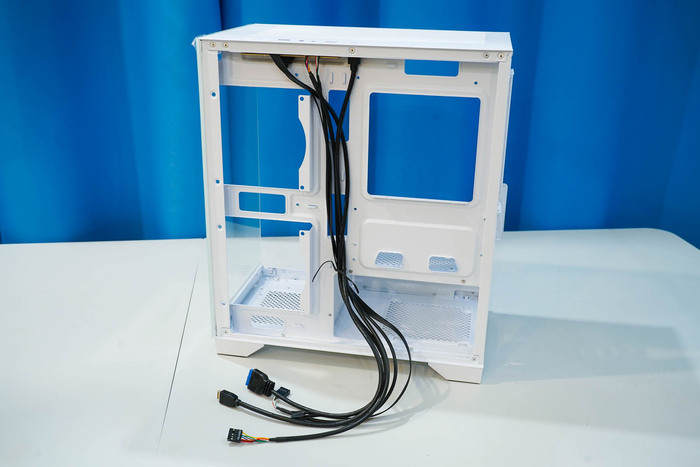 Ограниченное пространство для прокладки кабелей за задней стенкой может затруднить аккуратную сборку. С другой стороны. предусмотрены каналы, "окошки" и места для крепления стяжками получившихся жгутов.