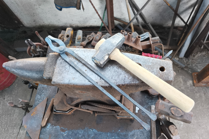 И к хорошим новостям: теперь в этой кузнице появились мои личные инструменты! Завтра у меня день рождения, и это - немного раньше пришедший в честь него подарок — молоток на 1,5 кг и клещи под 10-й пруток. Спасибо родителям моей ненаглядной за этот подарок 🙂