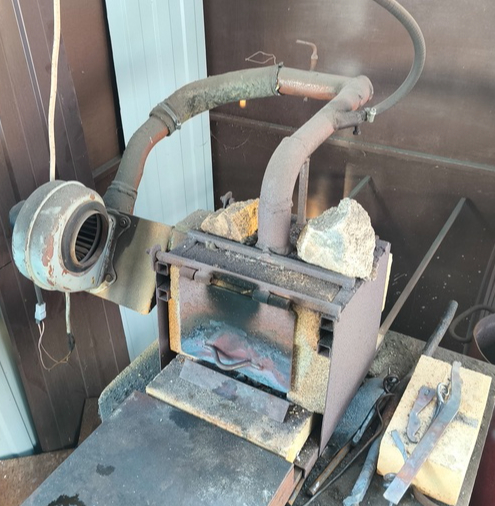 Сердце кузницы — горн. У соседа горн газовый, питается от пропанового баллона и использует не инжекционную горелку, а горелку с нагнетанием воздуха улиткой. Судить о том, хороша такая горелка или нет, я не берусь — опыта работы на других у меня нет, а верить на слово незнакомым дядям из интернета не считаю правильным. Сам себе я бы поставил два горна — угольный и газовый, но до появления собственной кузницы мне ещё не скоро 🙂