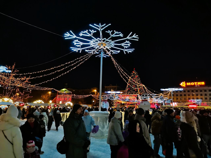 Друзья, а вы отмечаете Старый Новый год? Думаю, что подавляющее большинство, конечно же, нет. Сомневаюсь, что многие из нас снова накрывают стол с салатами оливье, шпротами, фруктами и зажигают бенгальские огни. Хотя имеет место и такое кое-где у нас порой. Лично в нашей семье это просто дата как дата. Ничего выдающегося. Но вспомнить о том, как мы проводили эти новогодние праздники, в день Старого Нового года, всё равно хочется. И сейчас я вам покажу нашу Центральную городскую ёлку, которую мы посетили буквально недавно, под конец длинных выходных. 😉