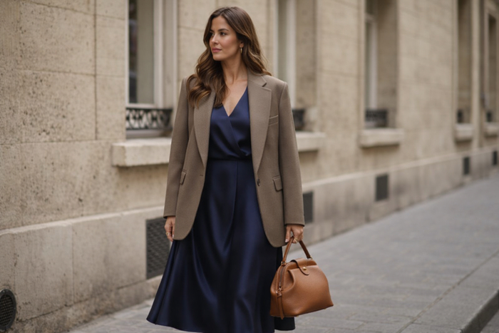 Главная ошибка, которая удешевляет образ - выбор тонкого, блестящего материала, напоминающего клеенку. Статусное платье должно быть матовым, плотным и тактильно приятным. Для женщин 40+ идеальной длиной будет миди, закрывающее колено. Это создает правильную вертикаль и вытягивает силуэт.