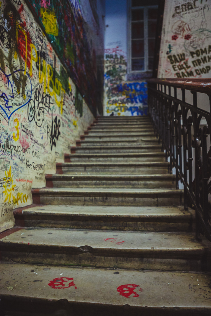 Помню тринадцатую ступеньку между первым и вторым этажом. (опять это число). Она единственная сохранилась в первозданном виде еще с тех времен. Ее постоянно реставрируют, красят, что там еще делают со ступеньками и только с этой все сходит, облазит, как и не бывало.