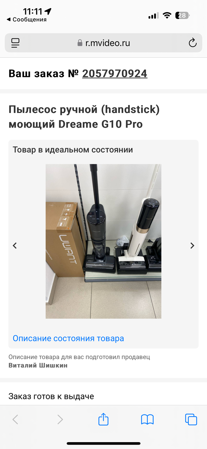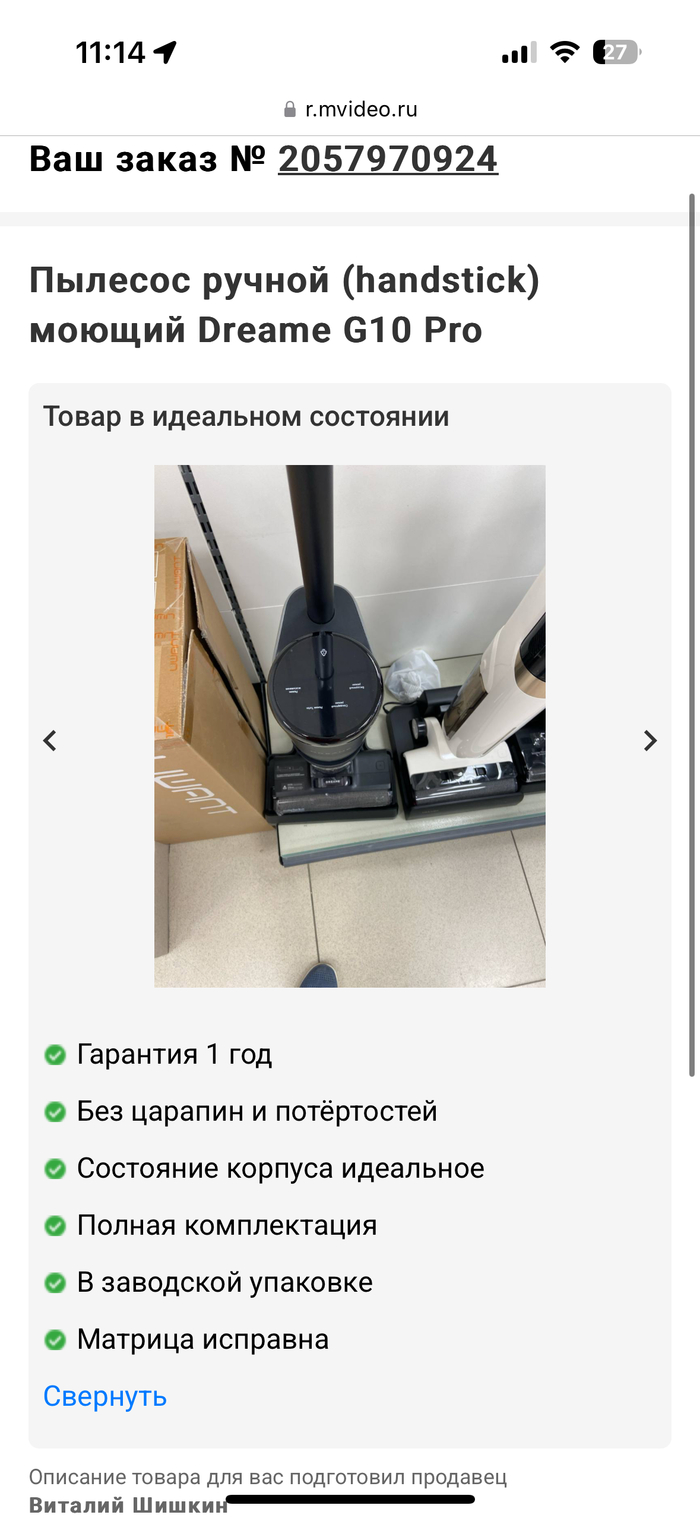 9 января 26 года оформила интернет-заказ с самовывозом из магазина. Товар был витринным. По этому поводу у меня не было переживаний, тк моющие пылесосы в торговом зале могут разве что посмотреть глазами и дотронуться пальцем + модель выпущена производителем совсем недавно, поэтому стоит он там недолго. И в принципе моющие пылесосы имеются в единственном экземпляре почти у любого продавца с оффлайн-магазинами.