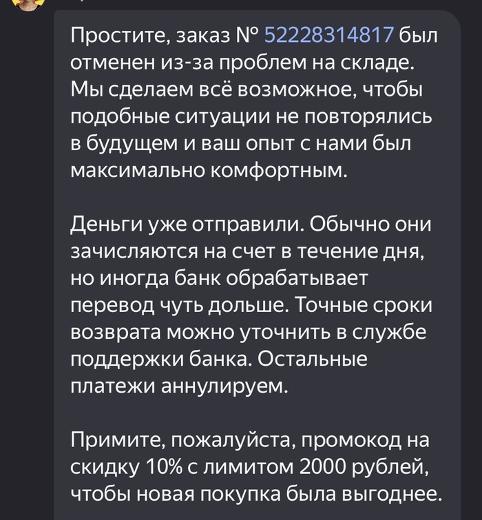 после сборки заказа мне прислали фото с комментарием собирающего заказ менеджера