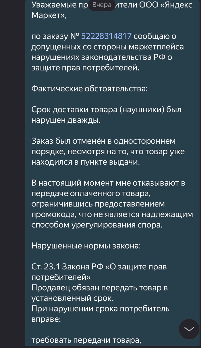 20.01.26 мой муж звонит на горячую линию с требованием предоставить ответ или зарегистрировать обращение о возмещении полной стоимости пылесоса, так, регламентируемые законом о ЗПП в 10 календарных дней нарушены.