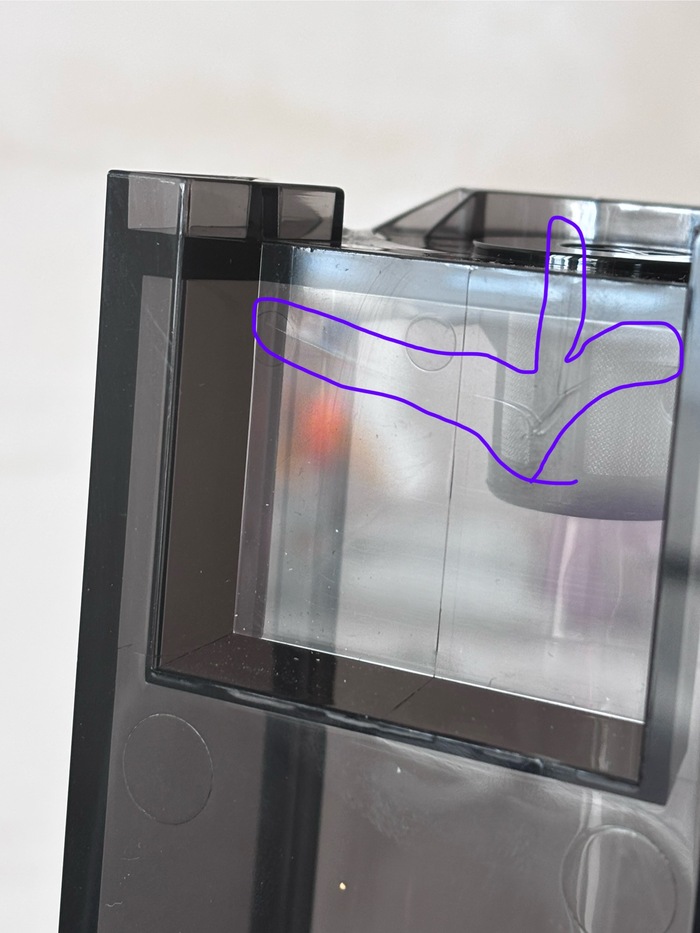 Я осмотрела корпус, к нему претензий не было. Ни царапин, ни потертостей не увидела. Бак для чистой воды был оклеен заводской пленкой.
