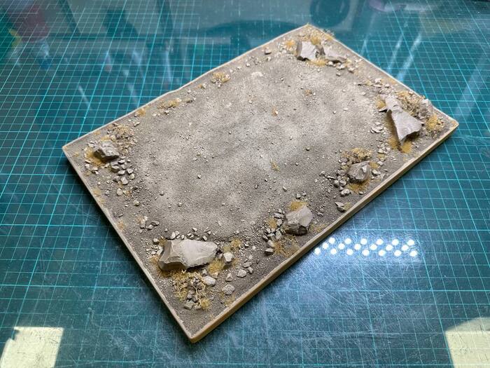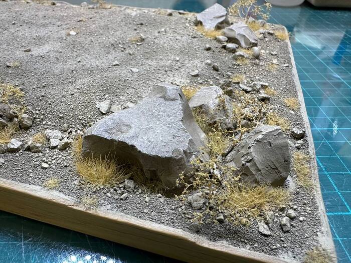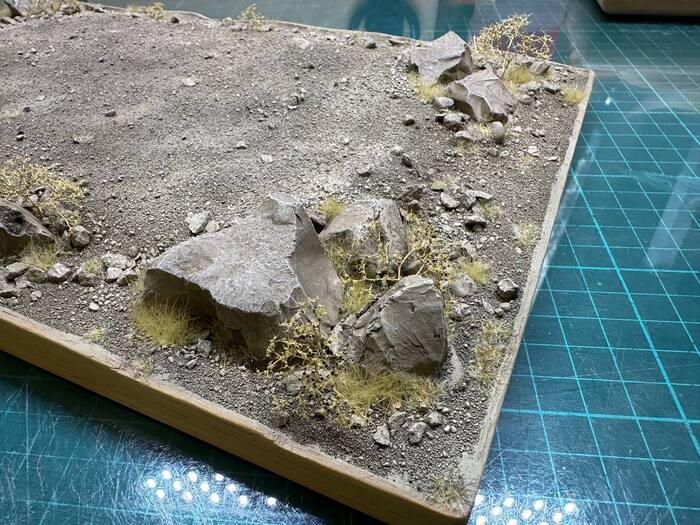 Пришло время заняться растительностью и завершить работу над подставкой. Поскольку по легенде у нас горная местность Афганистана, зелени будет немного, и она должна выглядеть сухой и выжженной солнцем. Задача — передать скудную, сухую флору горной местности.