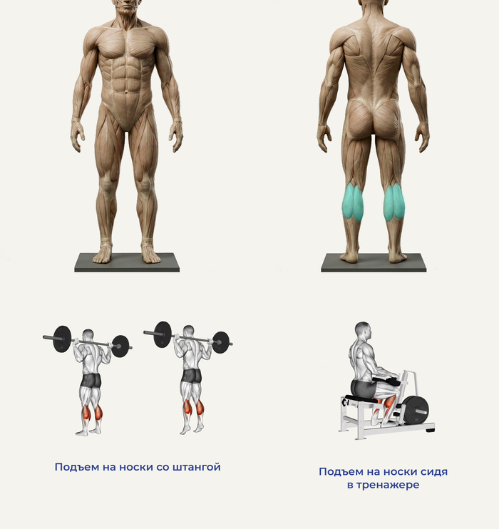 Мышцы: икроножные и камбаловидные мышцы.