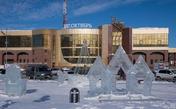 На следующий день отправился смотреть то, что не удалось в первый день, поэтому пассаж про урбанину закончу. Их плюсов - людей стараются стянуть в район Центральной площади, залив большой каток и сделав парк ледовых скульптур. На удивление - многолюдно, как днём, так и вечером. Это учитывая, что сегодня (4 января), опустилась дымка,а температура - за 30 градусов. Видимо, прохладно было лишь мне. Благо не всегда. Здесь же рядом ещё большая детская площадка, в том числе и с турниками. Подтягиваться в такой мороз я побоялся: вдруг турник сломается?