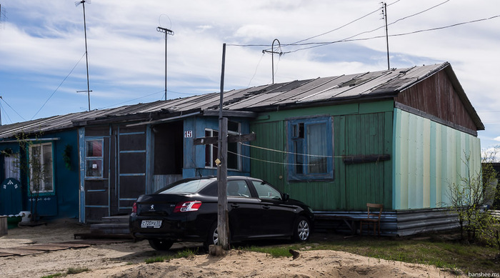 Деревяшки, как правило, выглядели примерно так. Когда-то нефтегазовые города и посёлки были полны таких "бараков" (так ласково называют эти дома местные жители), но сейчас в Нуре их почти не осталось.