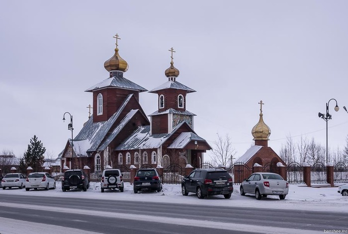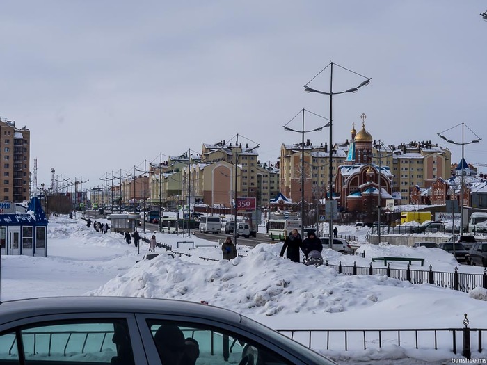 Сибирская улица, справа — собор Богоявления Господня. Не такой уж и большой для газового города.