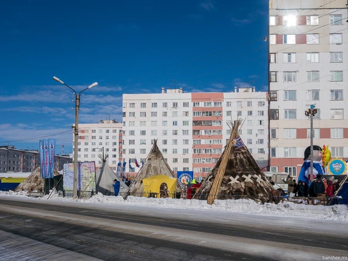 Каждый год на Ямале в разных местах проводят «день оленевода» или, официально, «Праздник народов Севера». Это фотографии с праздника 2016 года. Погода тогда стояла весенняя - солнечная и морозная (-20).