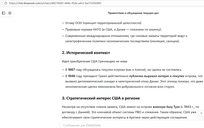 Несмотря на отсутствие планов захвата, США имеют на острове **военную базу Туле** (с 1943 г., по договору с Данией). Это ключевой объект системы ПВО и слежения. Таким образом, США уже обеспечивают свои стратегические интересы в Арктике через действующие соглашения.