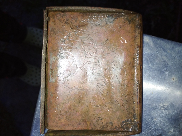 копая сегодня в огороде, нашел вот такую вещицу. Похоже на портсигар.