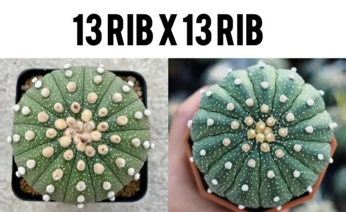 Семена полученные от скрещивания двух 13 реберных форм. Такия форма очень редкая и выведена в культуре. Обычно у астрофитумов всего 8 рёбер. В наборе 5 семян!