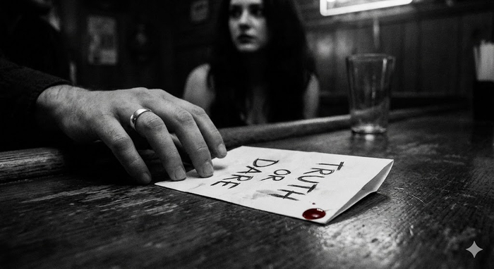 «Как насчет того, чтобы сделать игру интереснее? Если выиграешь ты, то забираешь меня сегодня к себе и делаешь всё, что захочешь. Если выиграю я, то я забираю тебя к себе. Итак, что выберешь — правду или действие?»