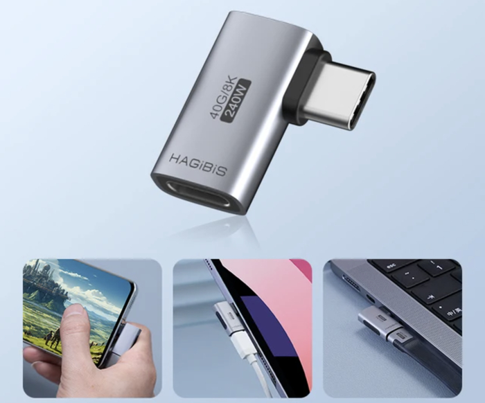5. Hagibis USB C C адаптер 240 Вт 40 Гбит 8K 60 Гц 90 градусов