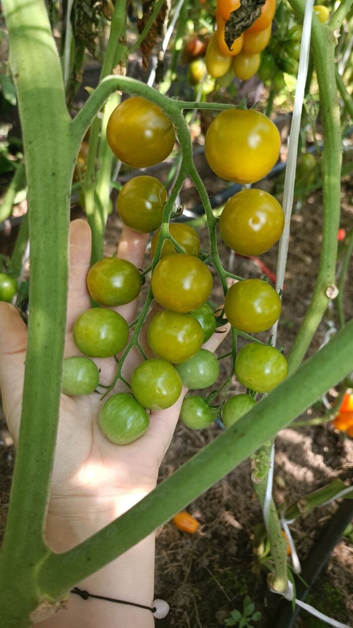 Сумасшедшие вишни Барри - с этого сорта и началась история с разными томатами. Увидела его в сториз у кого-то и влюбилась. Потрясающие кисти - целые букеты - а потом гроздья ягод. Светло-желтые, слегка вытянутые и с острым носиком. Вкус замечательный - сладкий, нежный, фруктовый, с лёгкой кислинкой. Очень нарядные и в цветении, и в плодоношении.