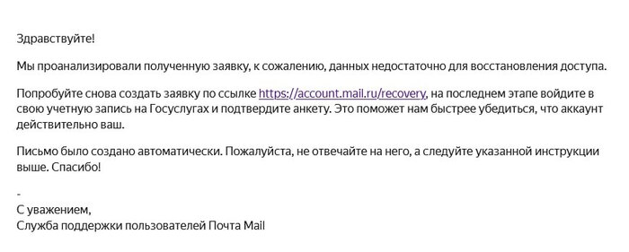 Тоже самое со второй почтой. При попытке восстановить данных стало недостаточно и теперь нужно....
